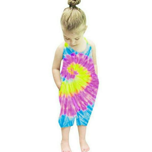 Karuedoo Baby Girl Tie Dye Suspender Overalls Pocket Casual Jumpsuits Shorts Walmart Com